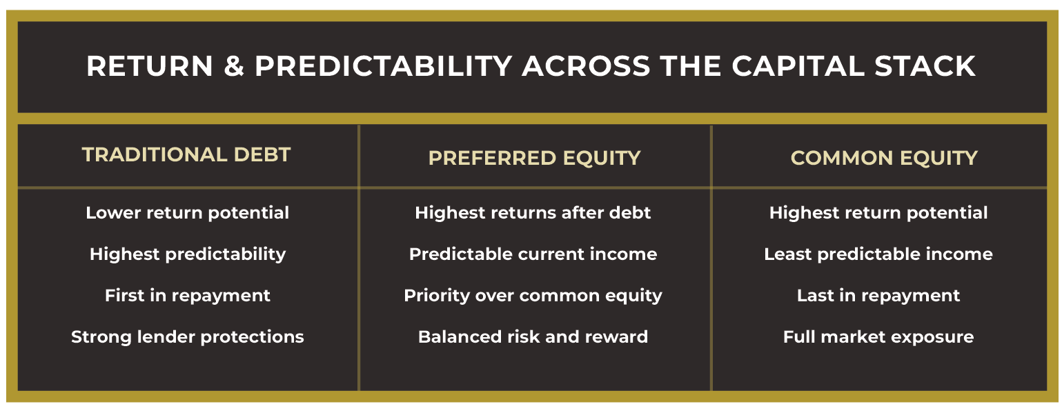 In today’s commercial real estate market, owners and developers face one of the most complex and challenging financing environments in recent memory. With traditional lenders tightening credit and borrowing rates and construction costs remaining elevated, accessing sufficient capital to move projects forward has become increasingly difficult. Preferred equity has emerged as a vital solution, providing the flexibility, speed, and structure necessary to keep projects on track without diluting ownership.